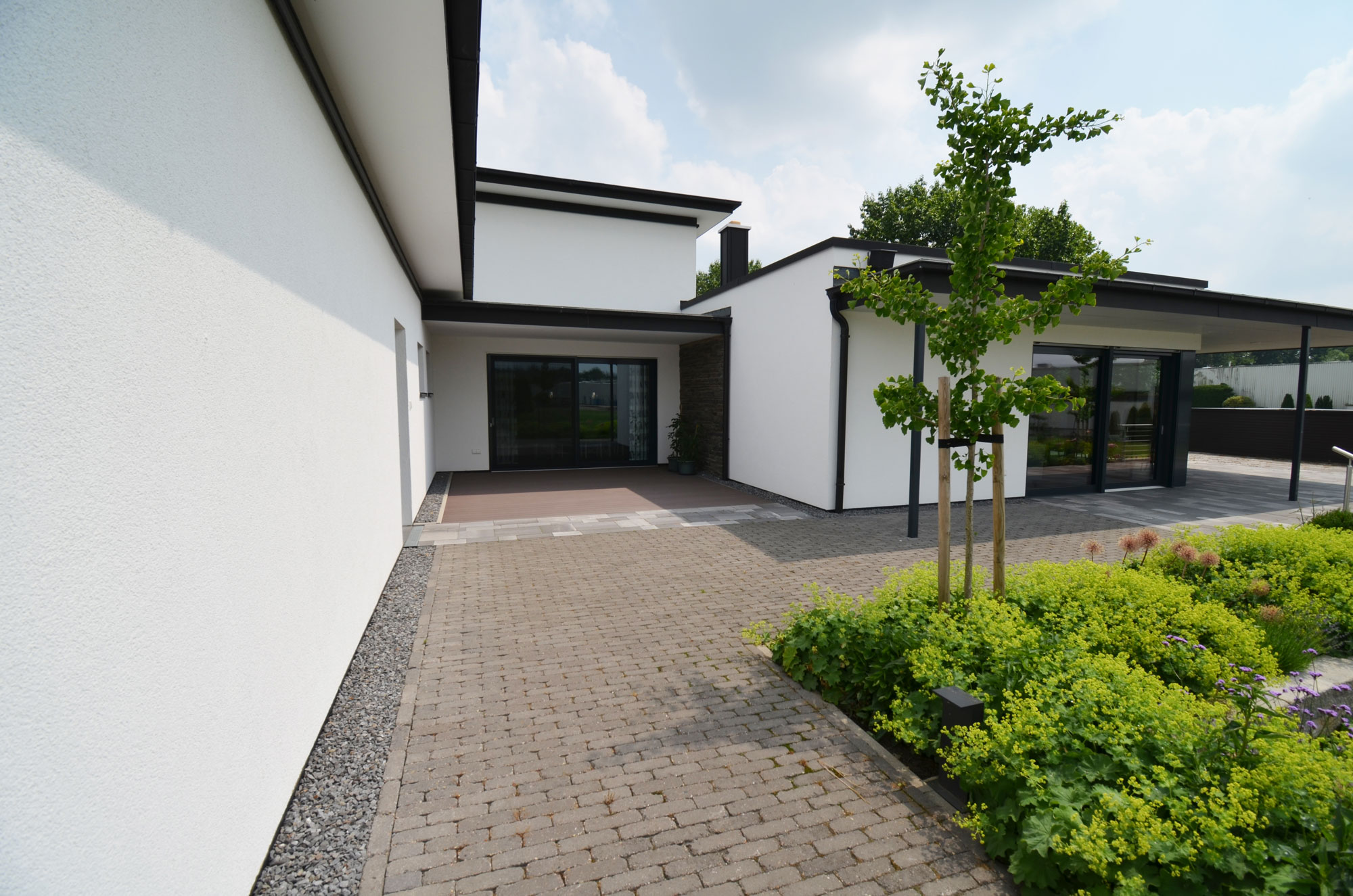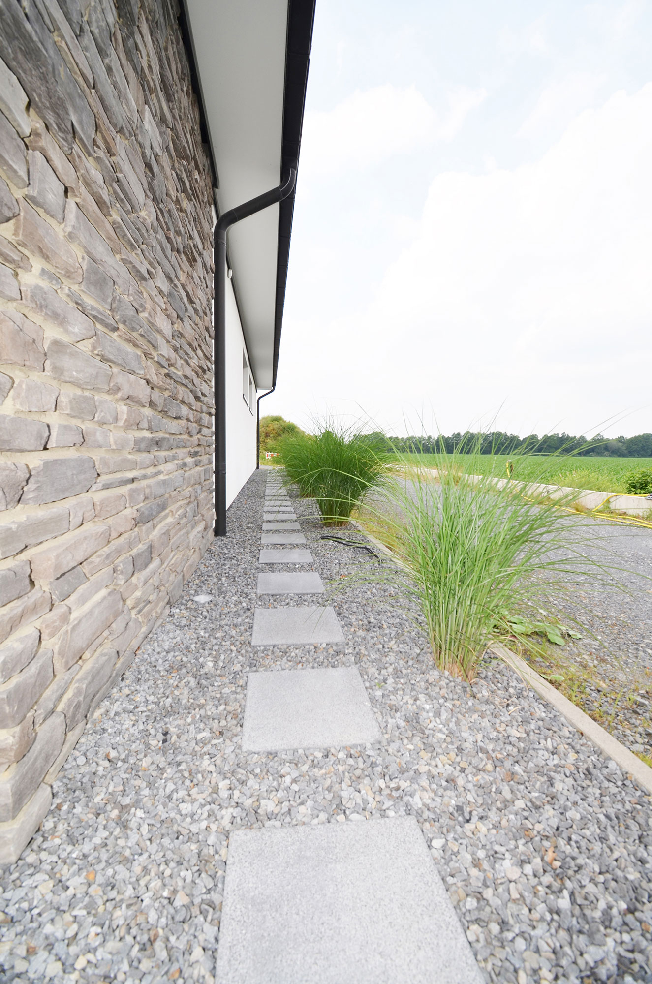 Ursprünglich als zweigeschossiger Bau geplant, wurde das Haus ebenerdig umgesetzt.