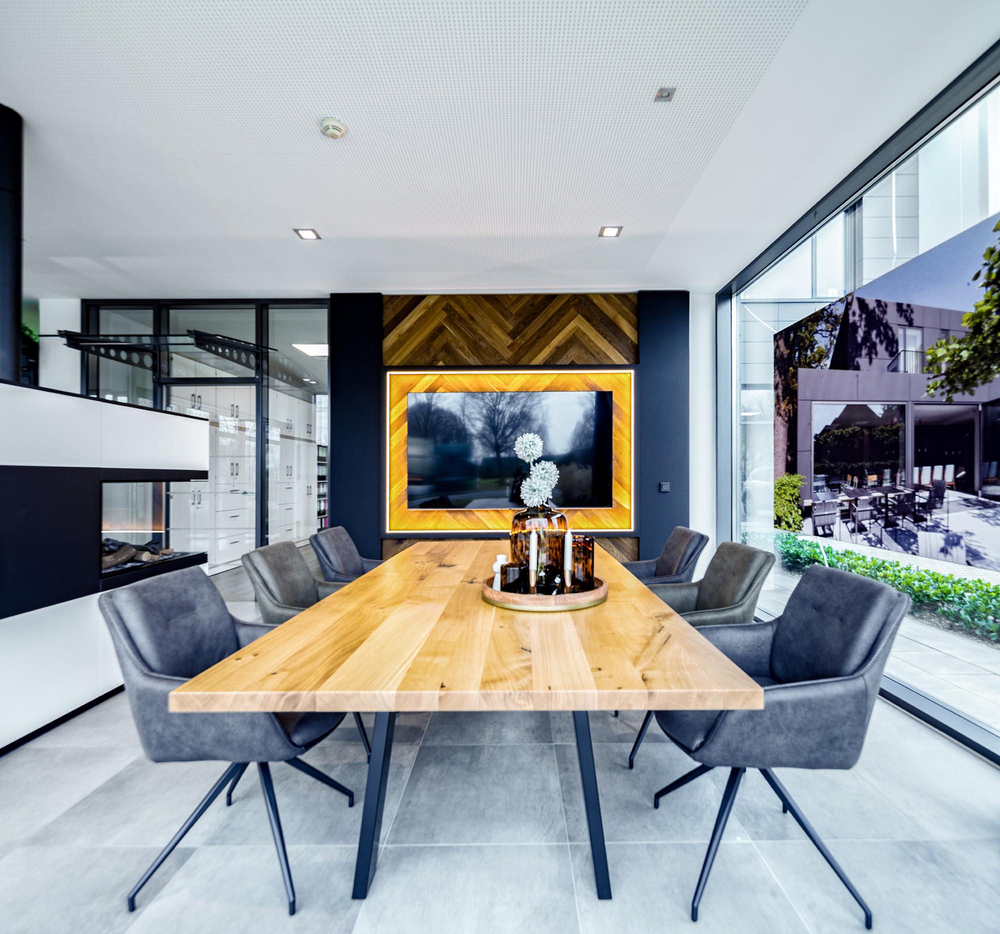 Das Konzept wurde eins zu eins nach meiner Planung umgesetzt und überzeugt durch klare Struktur, präzise Formensprache und eine einladende Atmosphäre. Die neue Ausstellung zeigt Türen, Fenster und Fassadenelemente nicht nur als Produkte, sondern als Teil eines harmonischen, realistischen Wohnraums – ein Ort, der Design, Funktion und Emotion miteinander verbindet.