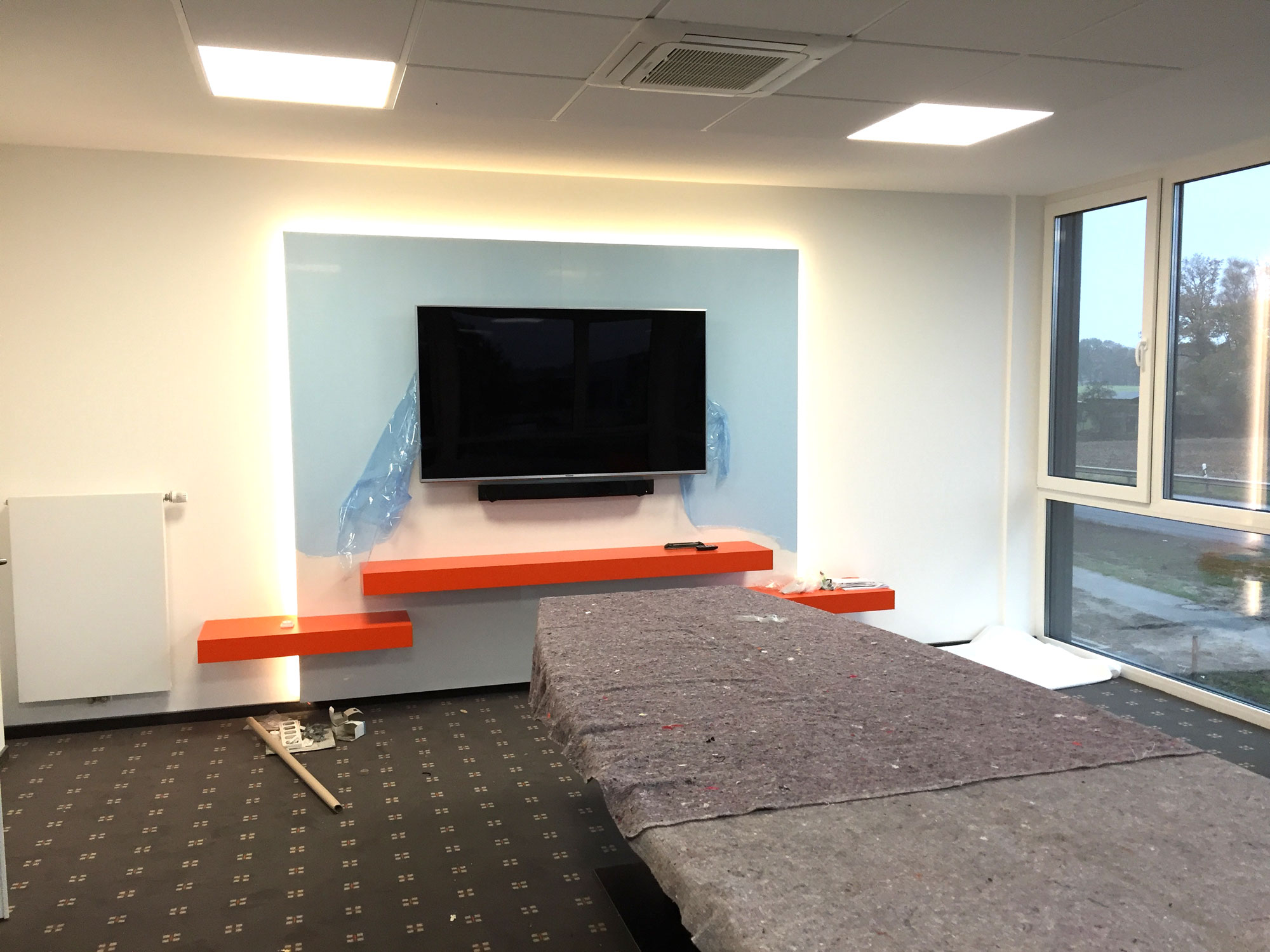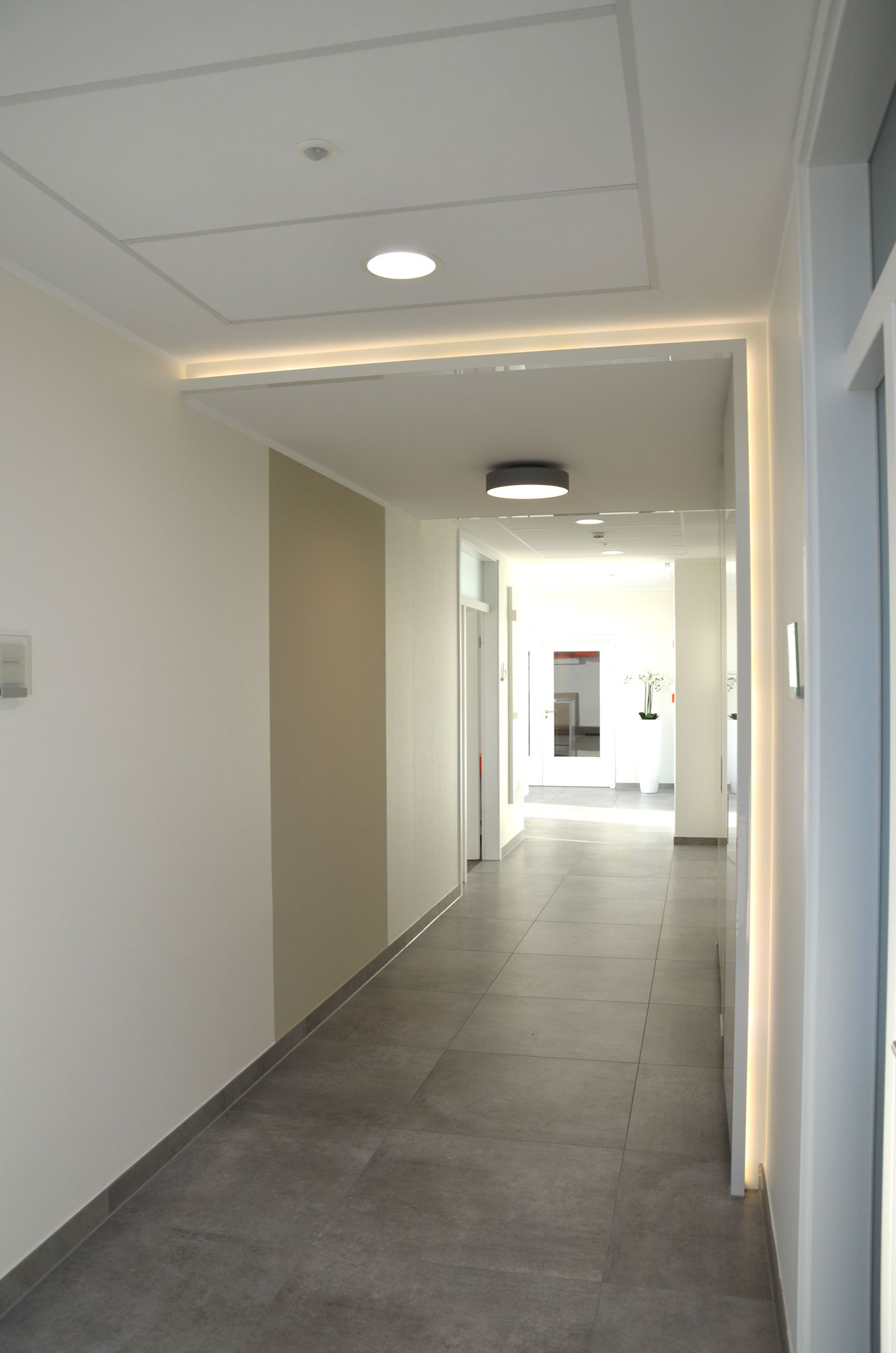 Ich verantwortete den kompletten Innenausbau über zwei Geschosse mit einer Gesamtfläche von rund 875 m², inklusive Entwurf, Planung, Bauleitung und Koordination aller Gewerke. Umgesetzt wurden Empfangsbereich, Büros, Besprechungsräume, Flure, Pentrys, Sanitäranlagen und Aufenthaltsräume – inklusive Licht-, Farb- und Materialkonzept.