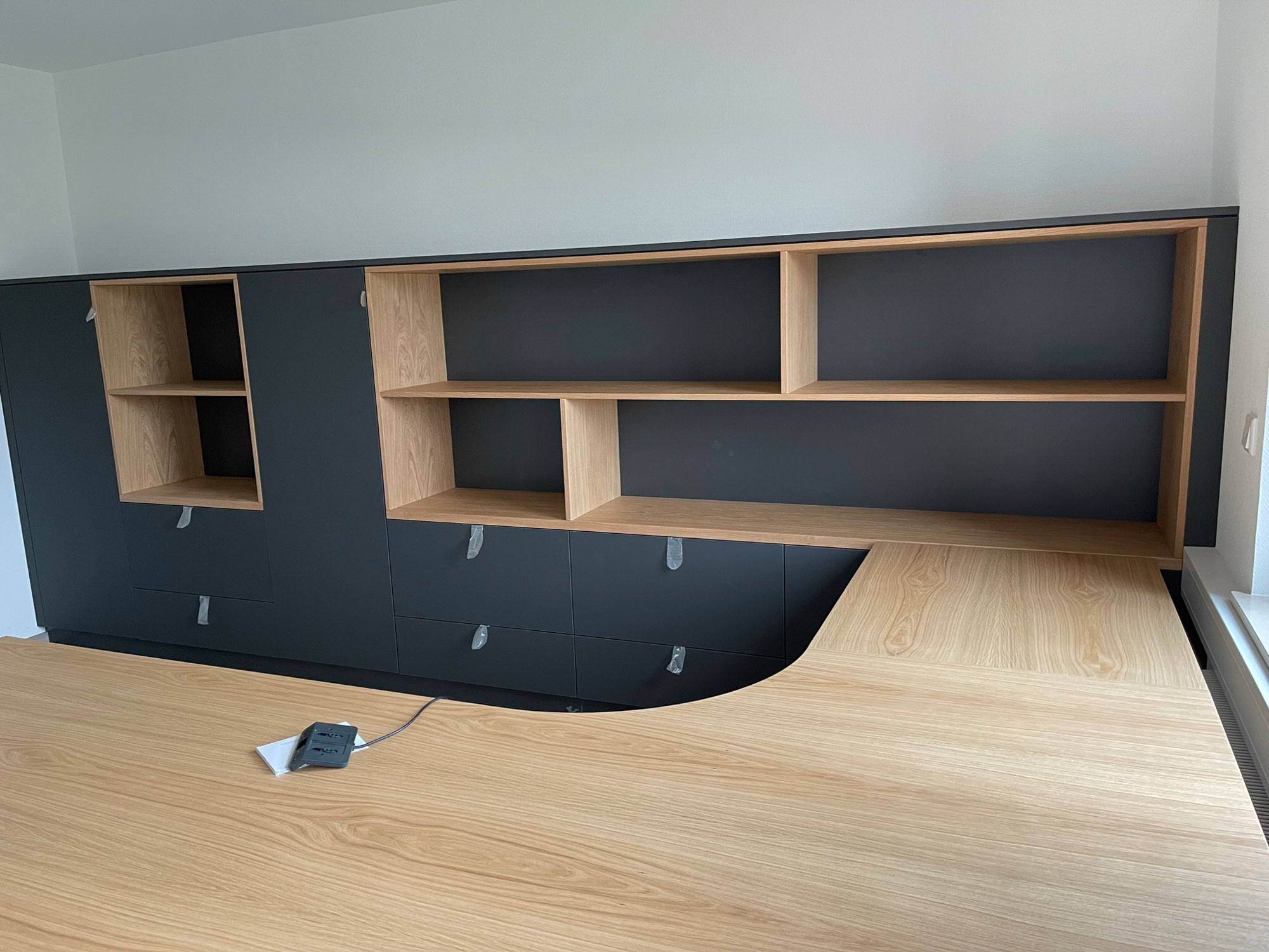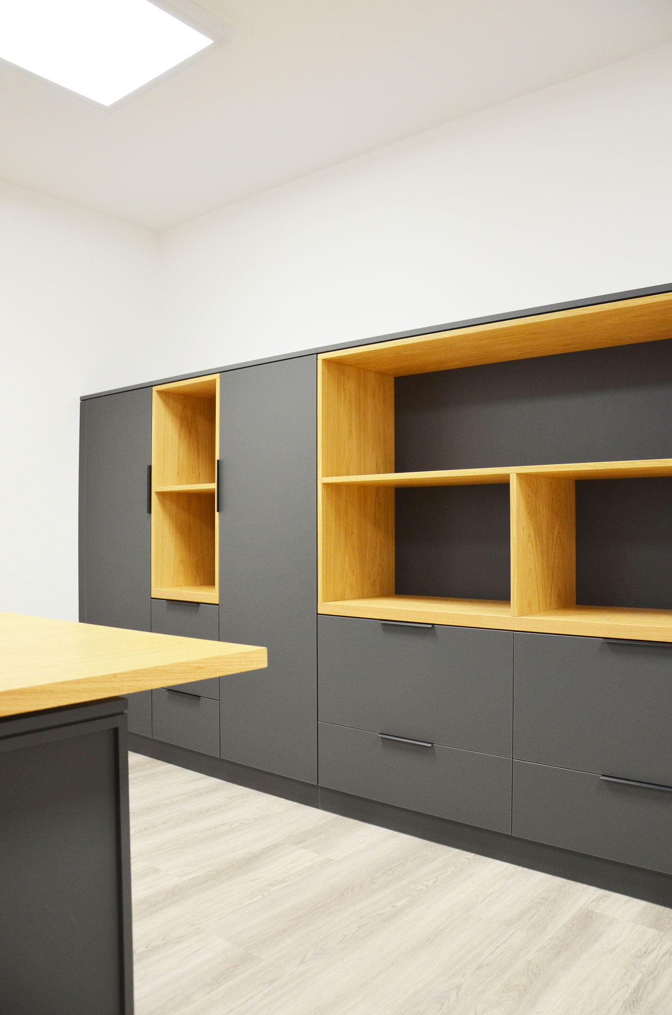 Entstanden ist eine Büroeinrichtung, die die Werte des Handwerks widerspiegelt: solide, durchdacht und authentisch. Die Kombination aus klarer Linienführung, moderner Beleuchtung und abgestimmtem Farbkonzept schafft ein Umfeld, das sowohl funktional als auch repräsentativ ist.